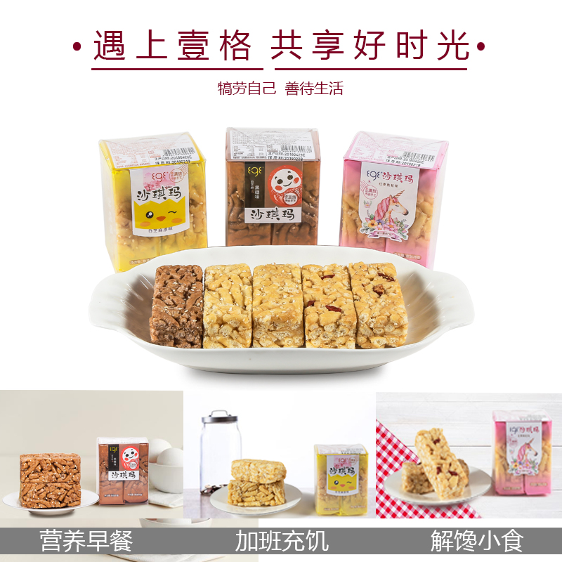 白芝麻原味沙琪瑪、白芝麻黑糖味沙琪瑪、紅棗枸杞味沙琪瑪、