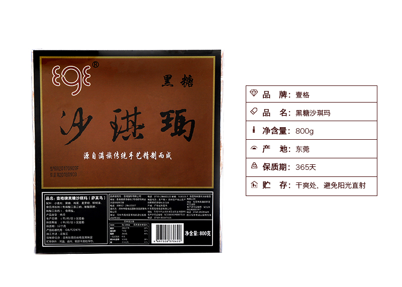 小麥粉、黑糖、雞蛋、麥芽糖、棕櫚油、食品添加劑(焦磷酸二氫二鈉,碳酸氫鈉,磷酸二氫鈣)、食用鹽