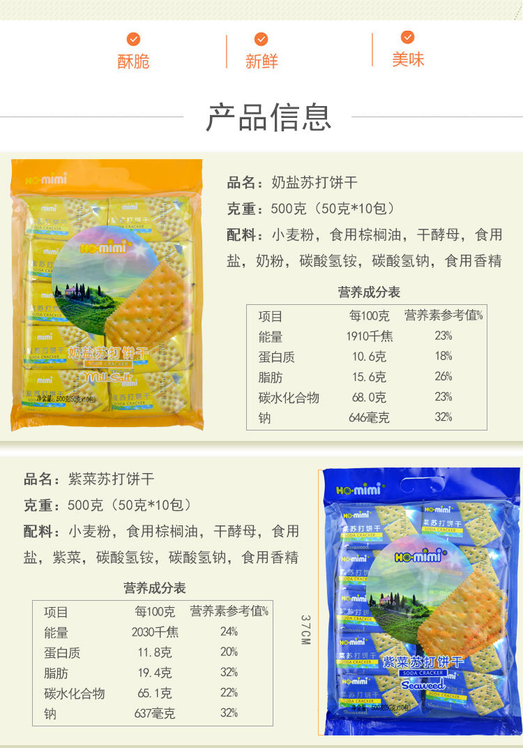 奶鹽蘇打餅干、芝麻蘇打餅干、紫菜蘇打餅干