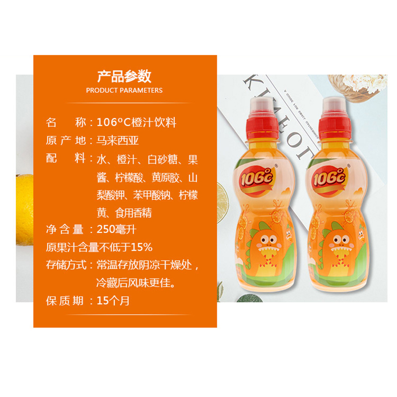 水、橙汁、白砂糖、果糖、檸檬酸、黃原膠、山梨酸鉀、苯甲酸鈉、誘惑紅、檸檬黃、食用香精